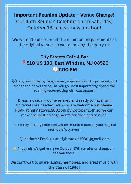 RSVP: Class of 1980 45th Reunion